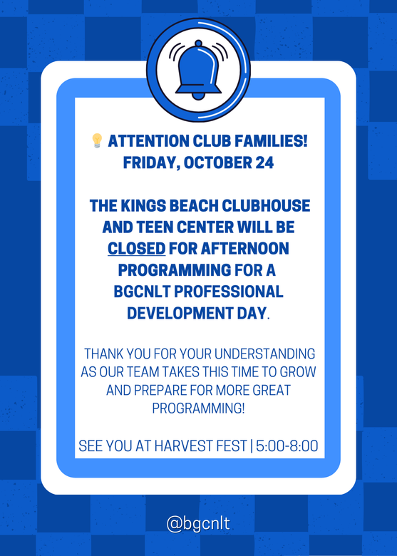 📚 WCSD-Incline Elementary Minimum Days – We’re Open! October 27 - 30, and the Duffield Youth Program will be OPEN for the afternoon fun & activities!