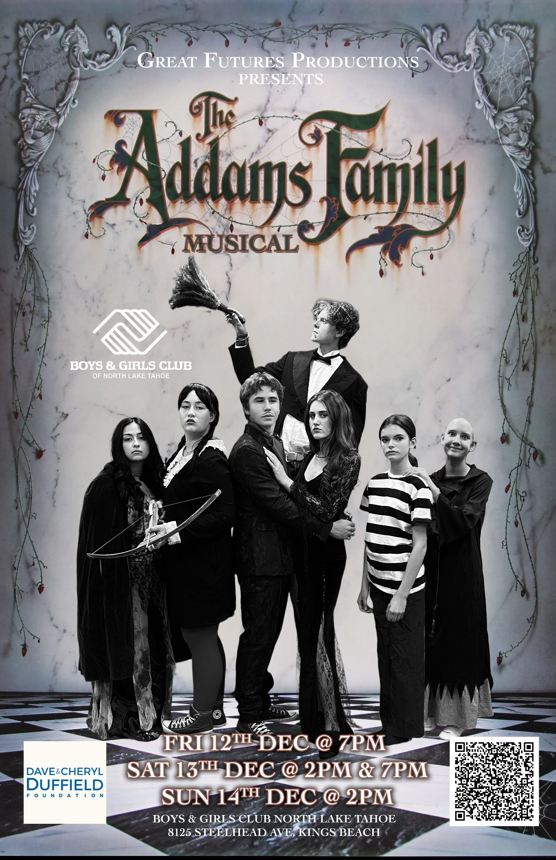 REGISTRATION: All Performers will be required to sign up for a BGCNLT Annual Membership ($20) and Register for The Addams Family on Active prior to the first scheduled rehearsal. There will be a $125 Participation Fee. Scholarships available. If you would like to go ahead and register now you can! CLICK HERE TO REGISTER ON ACTIVE